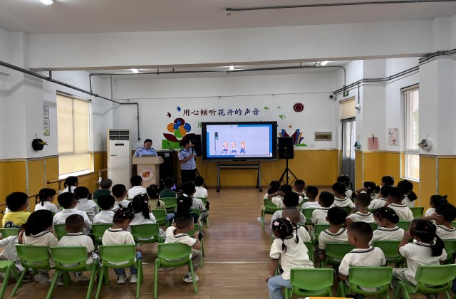 為全力做好秋季開學(xué)期間道路交通安全管理工作,增強(qiáng)幼兒交通安全意識和自我保護(hù)能力,預(yù)防和減少涉及幼兒道路交通事故的發(fā)生。9月2日,江蘇省如東縣栟茶鎮(zhèn)交警中隊(duì)宣講員楊秀琴走進(jìn)栟茶鎮(zhèn)靖海幼兒園開展“開學(xué)安全第一課”交通安全進(jìn)校園主題宣傳活動。