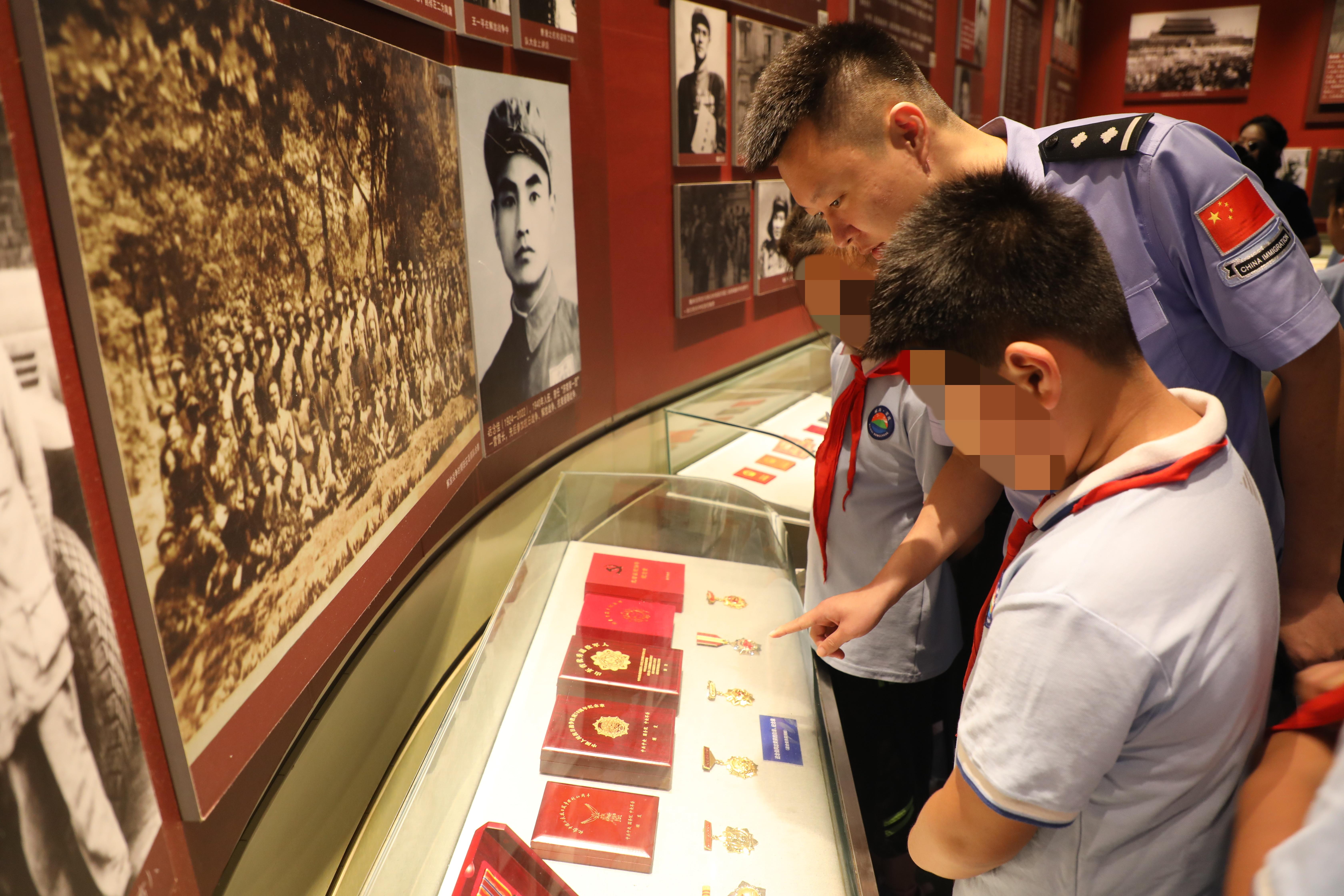 活動(dòng)中,該站民警攜手駐地小學(xué)學(xué)生一起走進(jìn)榮成市博物館“世紀(jì)榮成”展館,共同了解榮成從古至今的發(fā)展歷程,傳承紅色基因,弘揚(yáng)愛國精神。整個(gè)展館共展出700多張珍貴照片、300多件珍貴文物資料,展示了榮成自辛亥革命以來百年社會(huì)進(jìn)程、典型人物及榮成兒女取得的輝煌成就。通過一幅幅的歷史照片和抗戰(zhàn)時(shí)期歷史實(shí)物,生動(dòng)再現(xiàn)了抗戰(zhàn)時(shí)期,無數(shù)英勇無畏的中華兒女,為了民族獨(dú)立和人民解放,浴血奮戰(zhàn)、前赴后繼的壯烈事跡。跟隨著解說員的講解,大家仿佛被帶入到那段艱苦卓絕、血雨腥風(fēng)的抗戰(zhàn)歲月,看到了戰(zhàn)爭背后鮮為人知的感人故事,心靈受到了洗禮,思想也得到了升華。