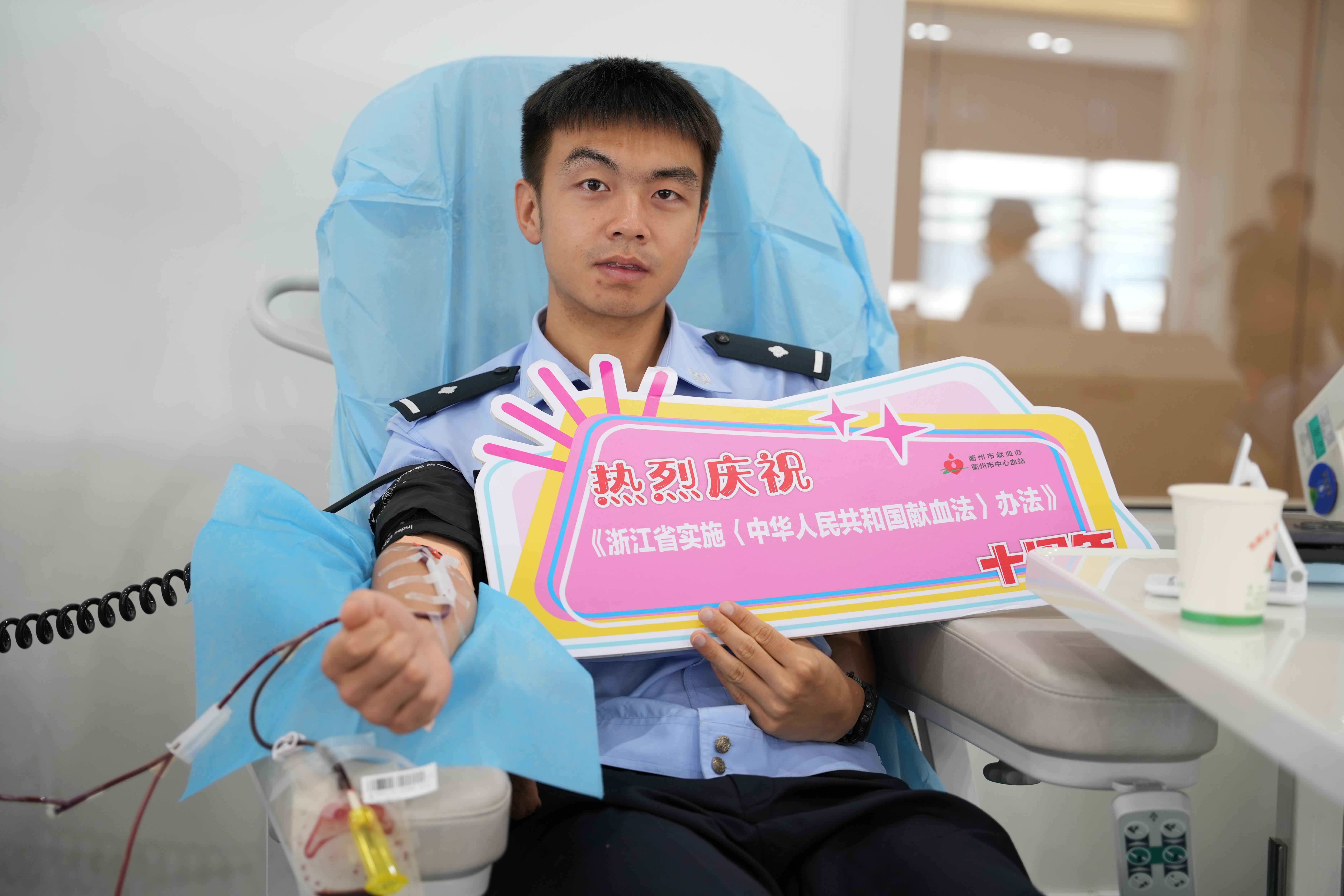 如今,徐垠飛已成為衢州市中心血站的“救火隊(duì)長”,每當(dāng)血庫告急,工作人員總會(huì)第一時(shí)間想到他。無論刮風(fēng)下雨,他總能及時(shí)出現(xiàn)在血站,血站里的護(hù)士也被他的行為所感動(dòng),徐垠飛笑著說,“作為一名黨員,參加無償獻(xiàn)血我隨叫隨到”。