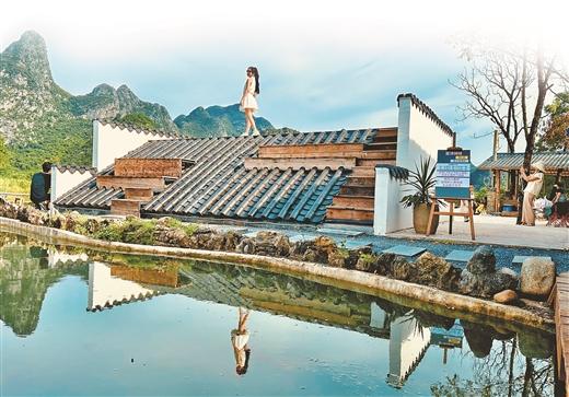 從靜謐垂釣地到熱門網(wǎng)紅打卡點(diǎn),山鏡小院巧妙融合桂林山水意境,變身別具一格的屋頂休閑區(qū)。這一設(shè)計(jì)不僅保留了鄉(xiāng)村的原始韻味,更增添了一抹現(xiàn)代時尚氣息。屋頂上的獨(dú)特景致,讓這里名聲大噪,網(wǎng)友更是親切地稱其為“上房揭瓦”的趣地。