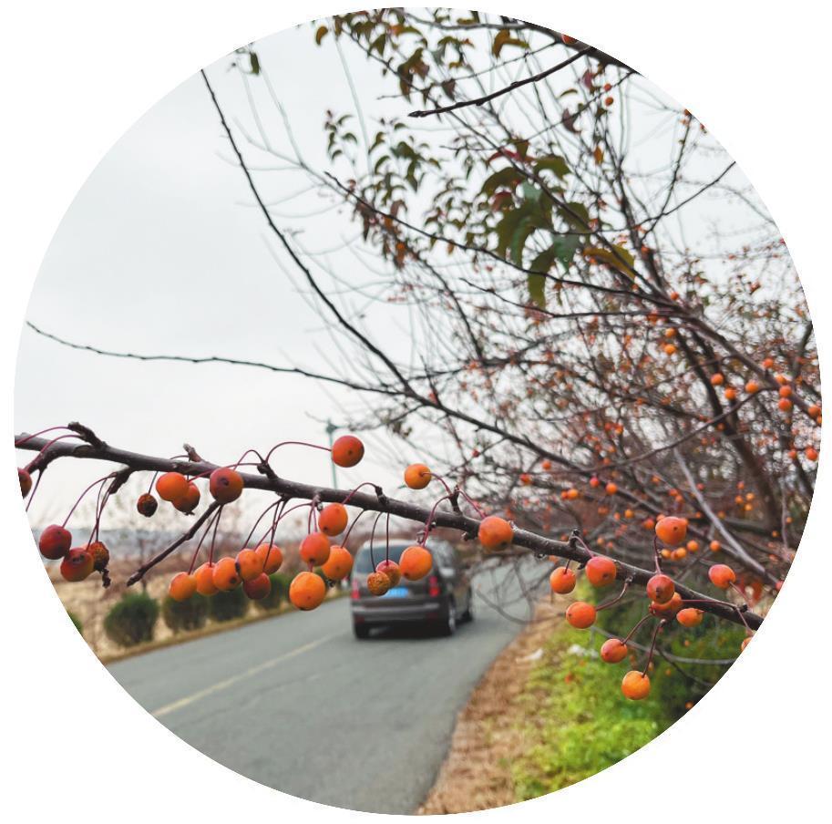 路邊的行道樹上,掛滿了紅色的果實(shí)