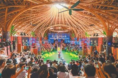 五指山市水滿鄉(xiāng)毛納村環(huán)形劇場內(nèi)的村秀現(xiàn)場(主辦方供圖)