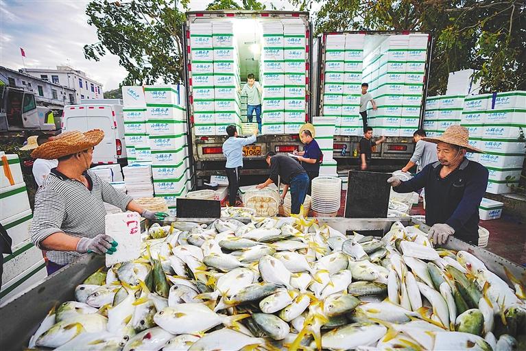 崖州灣首批深海網(wǎng)箱養(yǎng)殖的金鯧魚(yú)上市銷(xiāo)售 王將就 攝