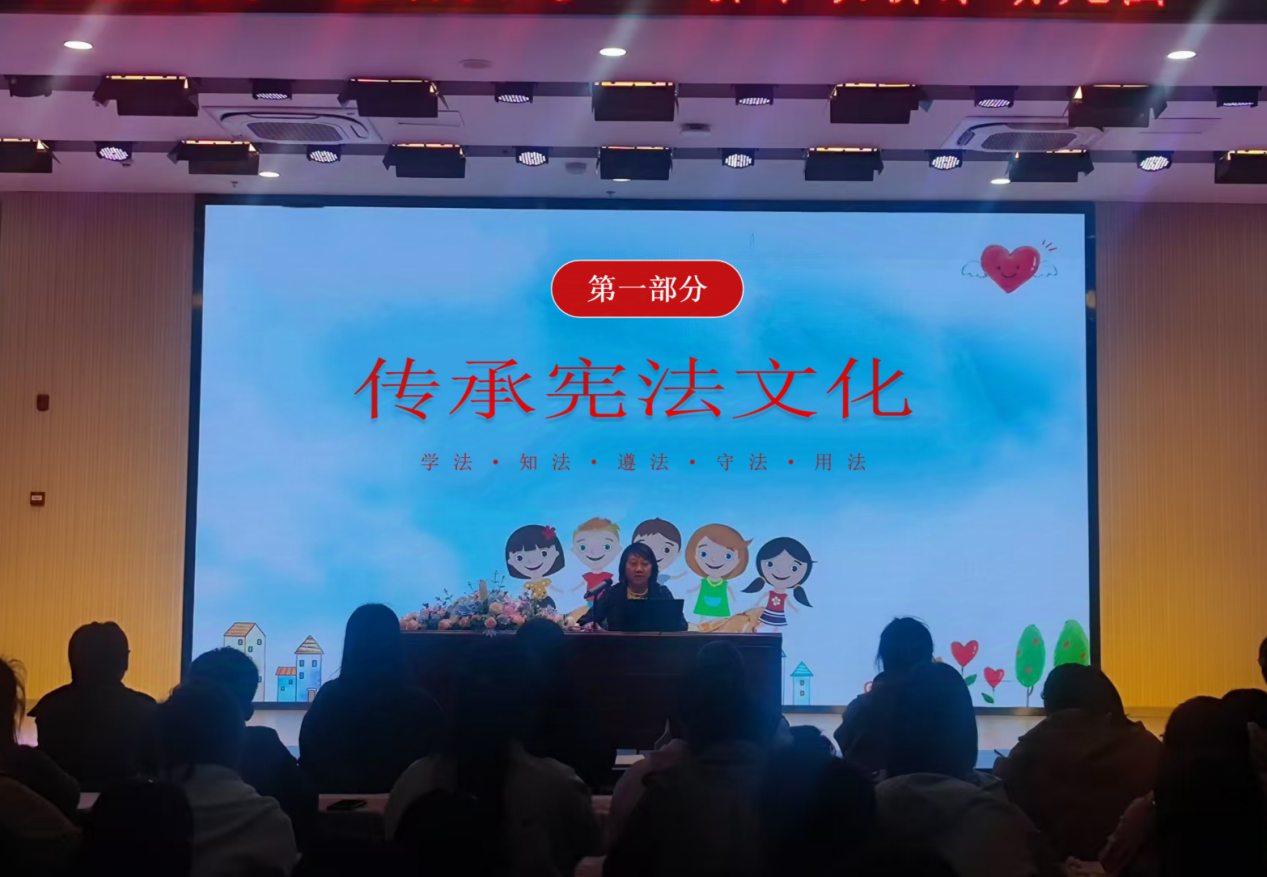 在“憲法宣傳周”活動期間,栟茶幼兒園特別邀請了法治副校長——栟茶鎮(zhèn)司法所所長陶亮。陶所長為全體師幼帶來了一場以“學(xué)習(xí)憲法”為主題的精彩普法講座。他結(jié)合孩子們的年齡特點,運用生動的 PPT、案例和動畫展示,深入淺出地講解了憲法的基本原則和重要性。用孩子們易于理解的語言,解釋了憲法如何保障每個人的基本權(quán)利和義務(wù),以及在日常生活中如何運用法律保護自己。尤其強調(diào)了與未成年人密切相關(guān)的法律,如《中華人民共和國未成年人保護法》《中華人民共和國婦女兒童權(quán)益保護法》以及環(huán)境保護等方面的法律。孩子們聽得津津有味,積極與陶所長互動。此次活動不僅讓孩子們增長了憲法知識,更深刻認識到憲法在維護社會穩(wěn)定和保障公民權(quán)利方面的重大作用。