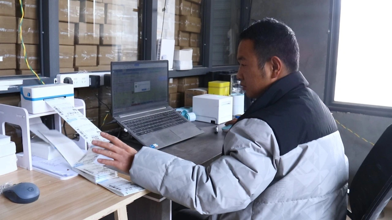 岷縣岷歸人家電子商務(wù)有限責(zé)任公司負責(zé)人李智軍正在打印訂單(岷縣融媒體中心供圖)