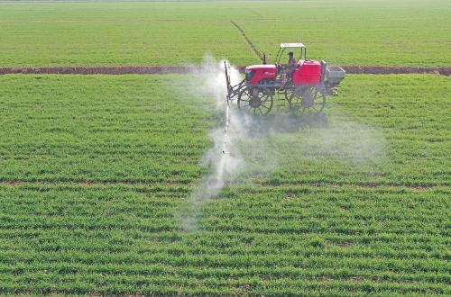 安徽農(nóng)墾華陽(yáng)河農(nóng)場(chǎng)開展社會(huì)化服務(wù)的田地里,農(nóng)機(jī)手正在進(jìn)行小麥植保作業(yè)(受訪者供圖)