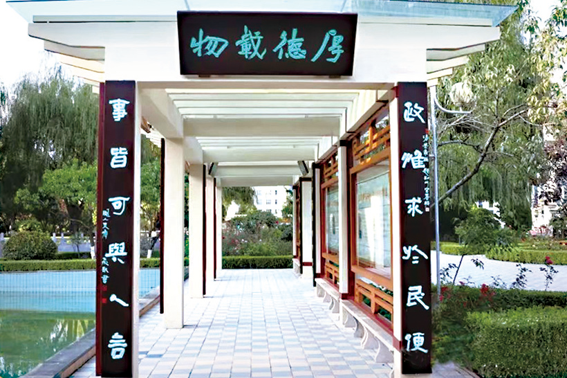 甘肅臨洮人民公園憲法廣場(chǎng)一隅。清梁章鉅題荊州官署聯(lián):政惟求于民便,事皆可與人言。(朱鵬飛 書(shū))圖片來(lái)源:青年詩(shī)詞楹聯(lián)