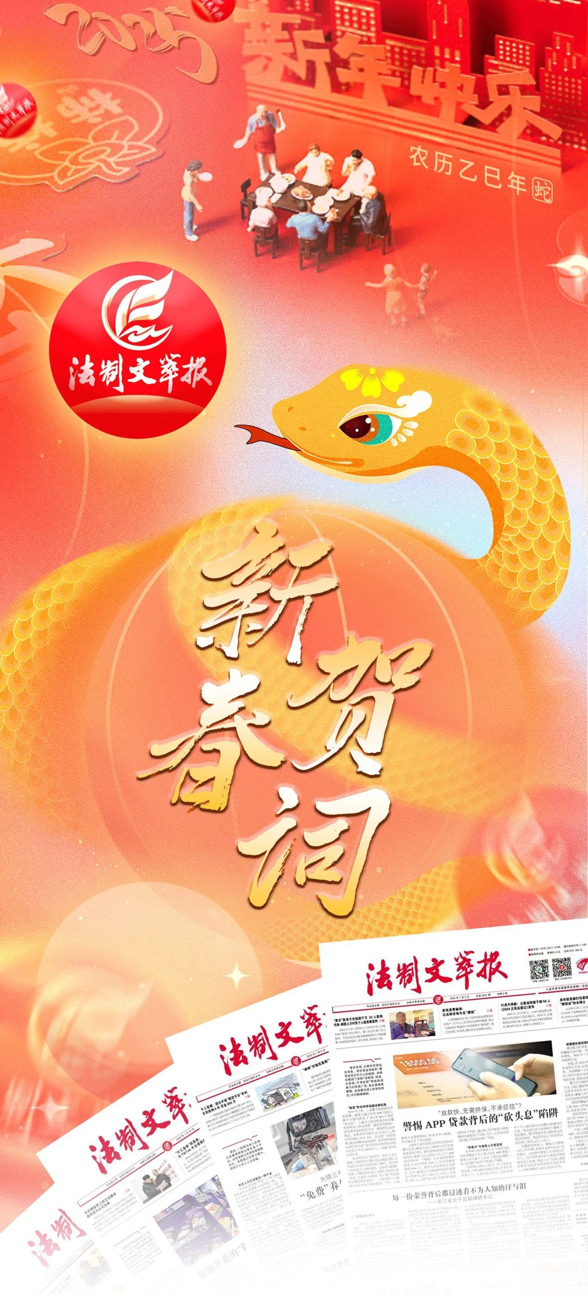 值此蛇年新春之際,法制文萃報(bào)感謝各位讀者朋友過(guò)去一年來(lái)對(duì)我們工作的信任和支持,也給各位讀者朋友及家人送去蛇年最美好的祝福。祝靈蛇獻(xiàn)瑞,祥蛇獻(xiàn)福,蛇舞翩躚,蛇躋新程!