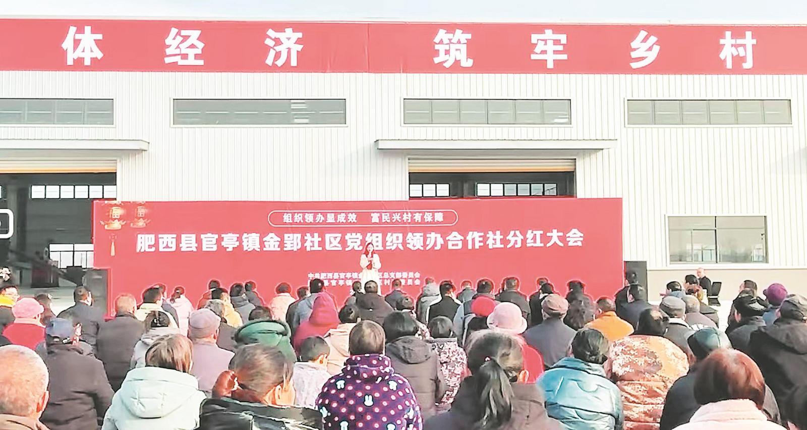 肥西縣官亭鎮(zhèn)金郢社區(qū)黨組織領(lǐng)辦合作社開展分紅活動(dòng)(圖片由肥西縣委組織部提供)