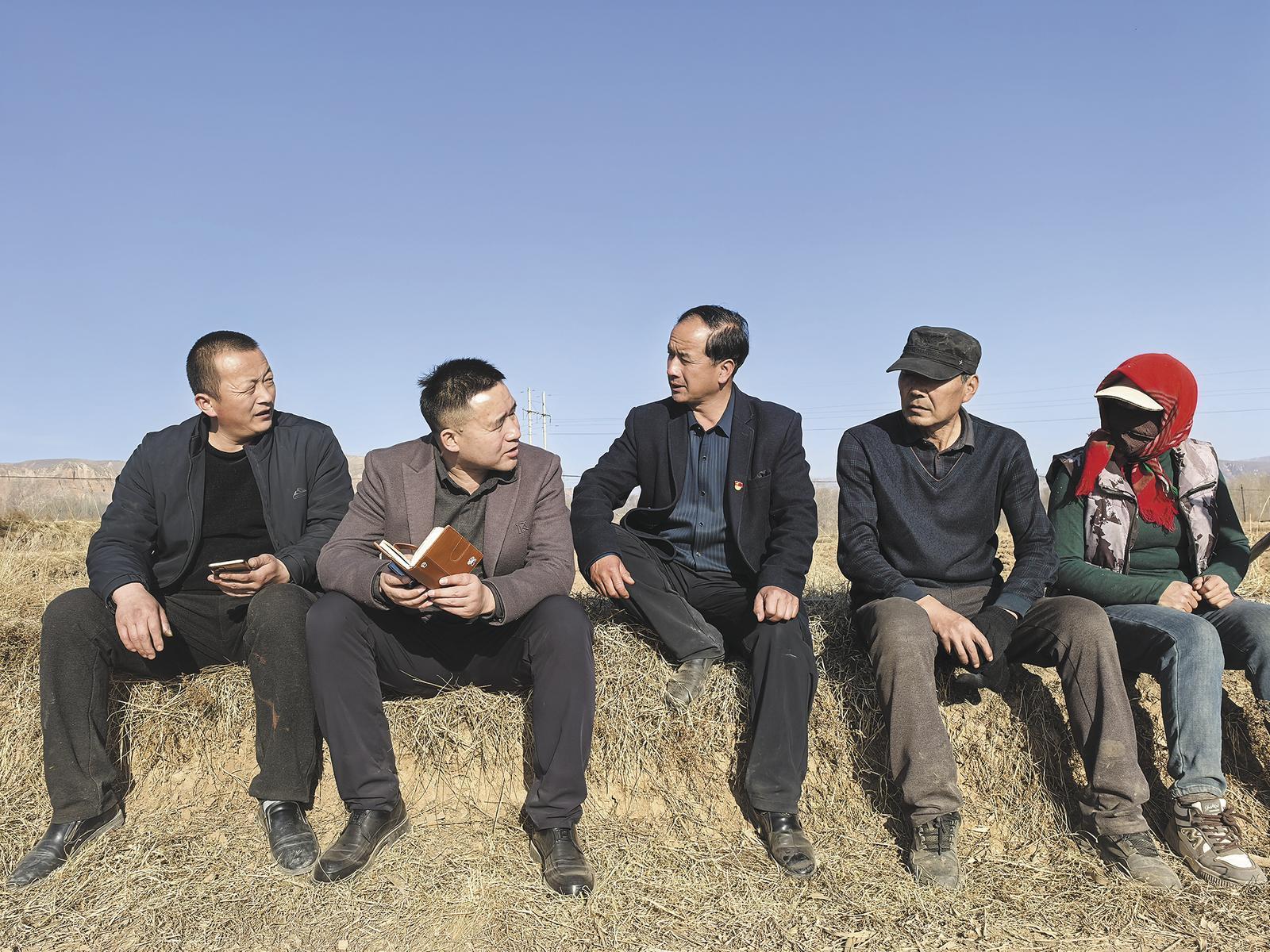 講完了補貼政策,馬玉明跟著李相前來到村里的種植基地。一臺犁地起壟機正在田間“轟隆隆”地運作,村民分散在田里,認真清理著地膜、雜草。