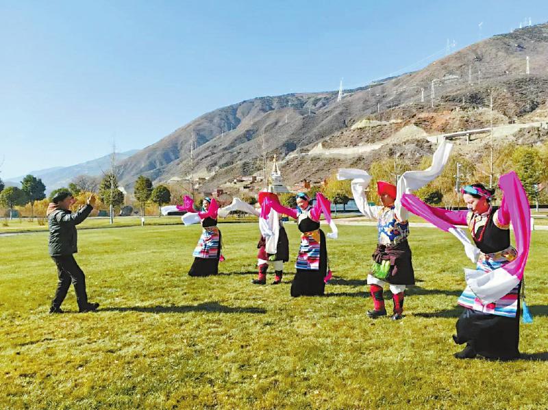 弦子舞跳進全國春節(jié)“村晚”,非遺火熱“出圈”,是巴塘縣多年努力的成果?!跋易游枨陙硪揽靠趥餍氖诘姆绞絺鞒校瑳]有具體樂譜。為保護傳承這一非物質文化遺產(chǎn),我們將弦子編入學校課間操,并成立弦子數(shù)據(jù)庫,目前已收集661張圖片、182組詞、244組曲、608首音頻、402個視頻?!卑吞量h文化廣播電視和旅游局副局長童玲介紹。