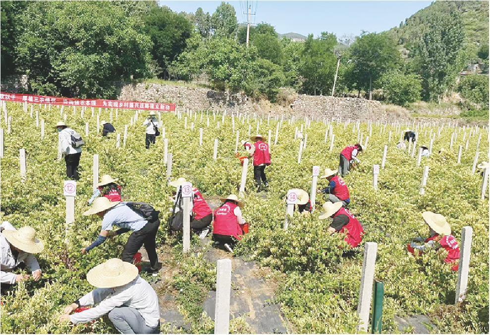 “金銀花產(chǎn)業(yè)契合南部山區(qū)生態(tài)保護(hù)功能區(qū)的發(fā)展定位。南部山區(qū)管委會(huì)充分發(fā)揮基層黨組織引領(lǐng)作用,統(tǒng)籌整合政策、項(xiàng)目、資金、人才等資源,著力打造金銀花鄉(xiāng)村振興產(chǎn)業(yè)特色品牌,助力群眾致富增收。幾年來,南部山區(qū)先后投入鄉(xiāng)村振興銜接資金3500余萬元,完善了種植基地的生產(chǎn)路、灌溉井、供水管道等基礎(chǔ)設(shè)施,有力保障了金銀花產(chǎn)業(yè)項(xiàng)目穩(wěn)定健康發(fā)展。”林慶會(huì)介紹,“突破固有思維,創(chuàng)新資產(chǎn)確權(quán)登記模式,用鄉(xiāng)村振興銜接資金購買苗木并確權(quán)到村,將金銀花10至15年盛花期的經(jīng)營(yíng)權(quán)委托給有資質(zhì)、有運(yùn)營(yíng)經(jīng)驗(yàn)的企業(yè),明晰所有權(quán)和經(jīng)營(yíng)權(quán),激發(fā)種植活力,形成企業(yè)有賺頭、百姓有干頭、村集體有盼頭的多方共贏新局面?!?/p>