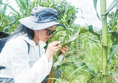 查達在貴州省施秉縣開展玉米病蟲害防治工作。貴州大學供圖