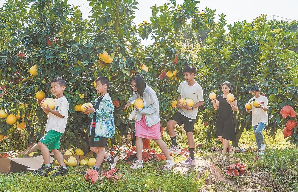陳海彬的農(nóng)場位于汀溪鎮(zhèn)西源村,占地近300畝,種植橘柚、葡萄柚、臺(tái)灣金煌芒果、果凍橙、楊桃等多種水果。過去,農(nóng)場主要依賴批發(fā)銷售,而隨著汀溪鎮(zhèn)農(nóng)文旅融合的推進(jìn),如今前來體驗(yàn)采摘的游客日益增多。