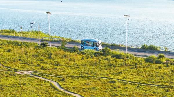 長沙市天心區(qū),一輛鄉(xiāng)村公交車行駛在湘江風(fēng)光帶。(資料照片)記者 辜鵬博 攝