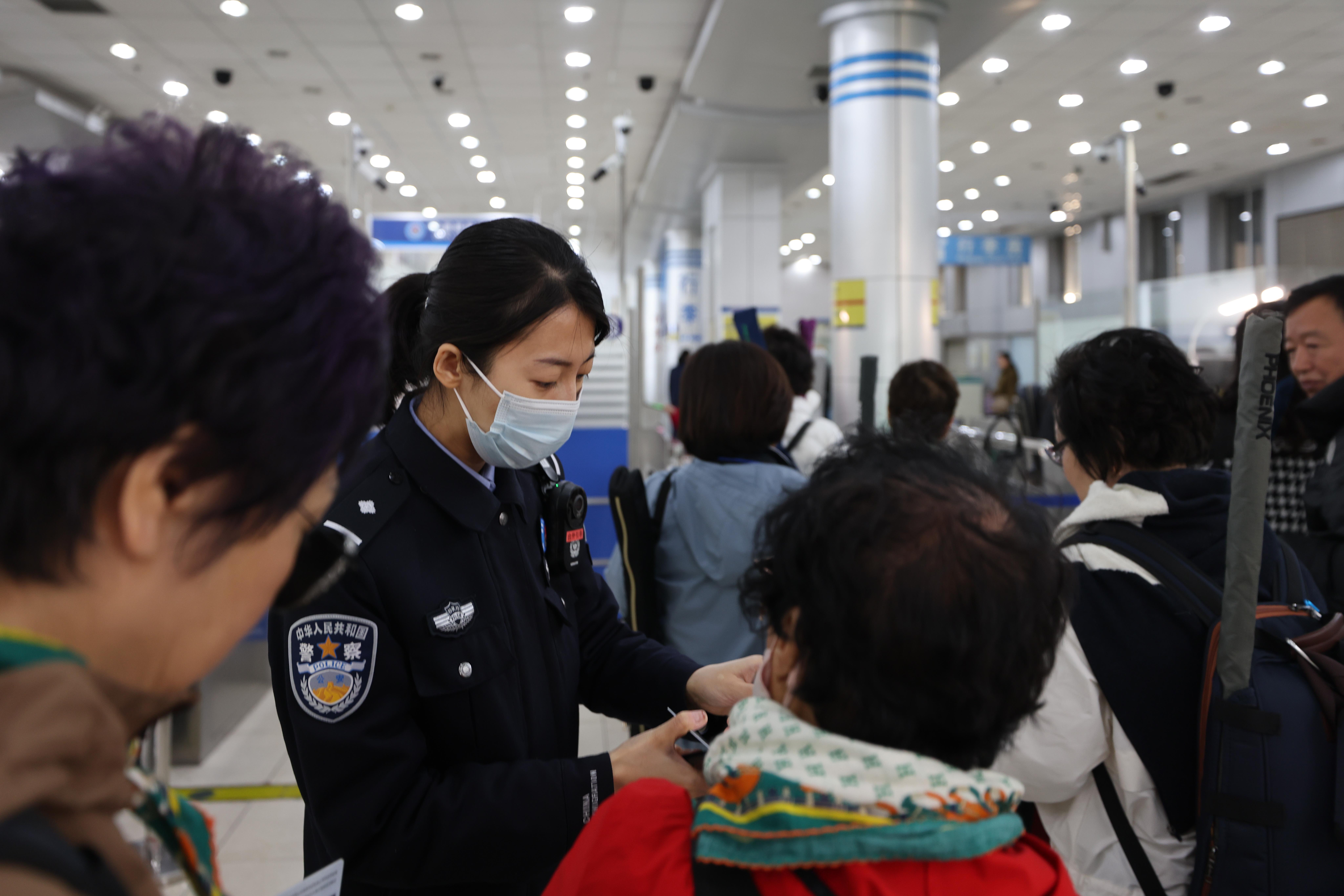 “為全力做好旅行團通關(guān)保障工作,我們邊檢機關(guān)主動靠前服務(wù),第一時間與口岸聯(lián)檢單位、船方及旅行社進(jìn)行通聯(lián),提前掌握團隊人員信息,協(xié)調(diào)旅行社通過整團分組、多批次、不間斷的方式,組織旅行團成員分批分時抵達(dá)口岸通關(guān)現(xiàn)場,確??诎吨刃蚓?。同時增派前臺查驗警力,開足查驗通道,選派精通韓語的民警靠前服務(wù),解決韓國旅客語言溝通不暢、地理位置不熟、政策法規(guī)不清等難題,縮短旅客通關(guān)時長,確保旅客高效快捷通關(guān)?!笔瘝u邊檢站執(zhí)勤一隊教導(dǎo)員慕楠說。