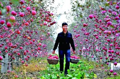 延安市安塞區(qū)南溝村村民張杰在果園搬運(yùn)蘋果。祁小軍 攝