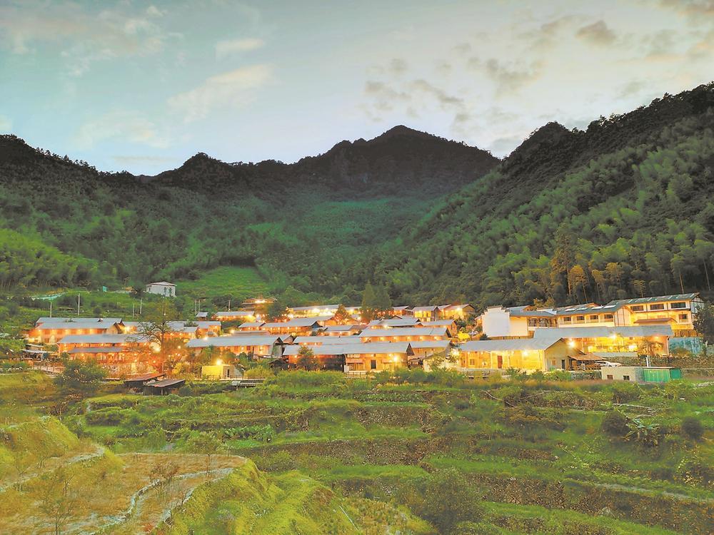 夜幕初垂,山影重重。5月14日晚,已在盤山公路上繞行半小時的汽車即將抵達山頂,此時,一片暖黃的燈火撞進了視野——錯落的坡頂民居嵌在山坳里,黑瓦順著山勢延展,幾堵白墻在暮色中格外清亮。