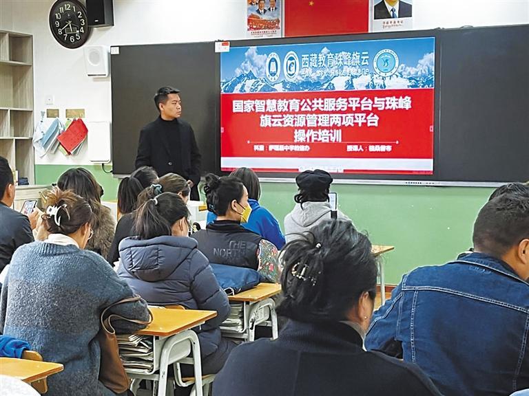 日喀則市薩嘎縣中學(xué)開展兩平臺應(yīng)用培訓(xùn),助力教育數(shù)字化升級。受訪單位供圖