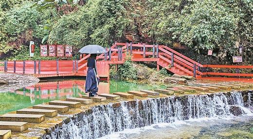 景區(qū)內(nèi)一條貫穿整個景區(qū)的紅色棧道格外引人注目。水錦順莊景區(qū)總監(jiān)助理韋炳佳介紹:“特意架高的棧道是為了避開植被使其不被破壞,采用環(huán)保木材建設(shè),雖增加成本卻最大限度保護生態(tài)。”