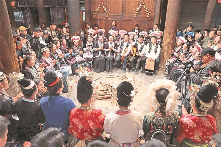 原本,白天忙農(nóng)活,夜晚村民們相邀在鼓樓下齊唱侗族大歌,是侗寨里的一道風(fēng)景線。