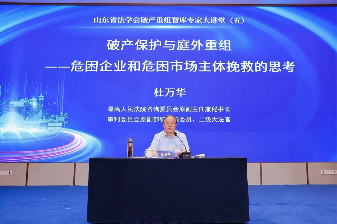 最高人民法院咨詢委員會原副主任兼秘書長、審判委員會原副部級專職委員、二級大法官杜萬華作《破產(chǎn)保護與庭外重組——危困企業(yè)和危困市場主體挽救的思考》的主旨發(fā)言,以黨的二十屆三中全會為何要將破產(chǎn)制度確立為市場經(jīng)濟基礎制度的深層原因為切入點,進而闡釋市場主體活動是市場經(jīng)濟發(fā)展的核心動力,強調(diào)受經(jīng)濟周期影響,破產(chǎn)是市場經(jīng)濟中的常態(tài)化現(xiàn)象。針對“談破色變”的認知誤區(qū),主張應以積極、理性的態(tài)度正視破產(chǎn)制度。他詳細論述了我國破產(chǎn)制度的人民性性質及保護性、救濟性、治理性等特征;同時,對庭外重組進行詳細論述,并解讀了為什么要搞庭外重組、如何搞好庭外重組,應將庭外重組工作與司法審判、管理人工作等做好協(xié)同、銜接,提出下一步的工作是建立司法重整、司法和解、破產(chǎn)清算工作機制,從而推動整體制度的完善。他憑借深厚的司法實踐積淀,在深入解析破產(chǎn)保護與庭外重組協(xié)同價值的同時,更精準剖析了危困企業(yè)及市場主體的系統(tǒng)性挽救路徑。