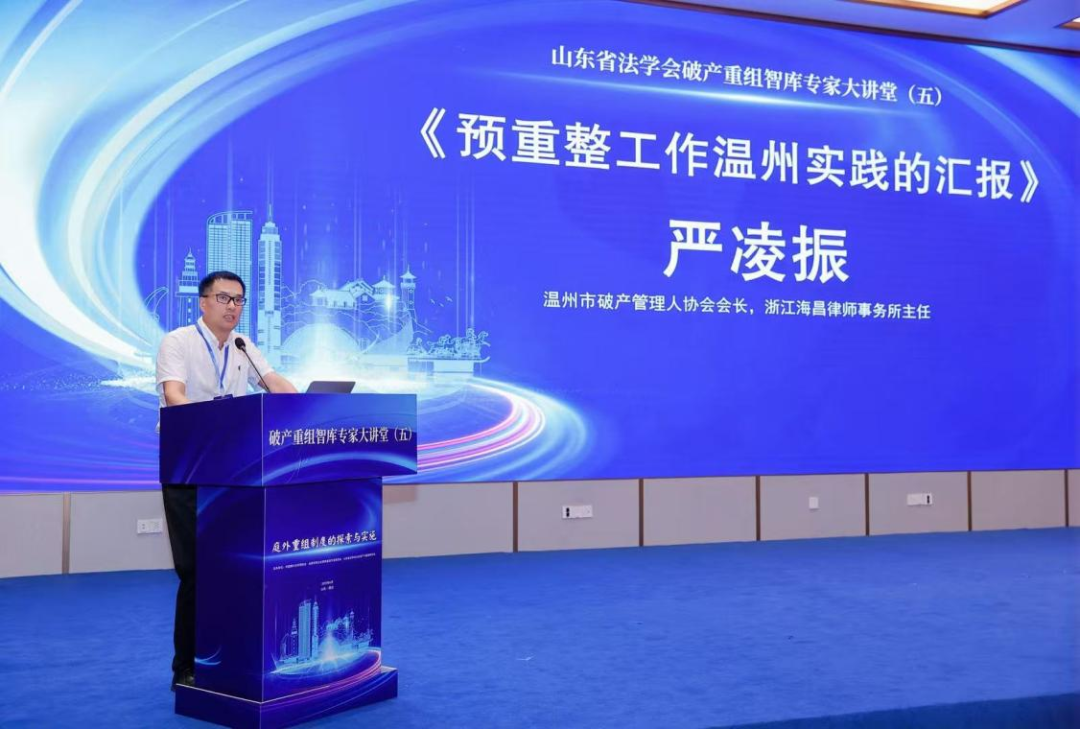 溫州市破產(chǎn)管理人協(xié)會會長、浙江海昌律師事務所主任嚴凌振以《預重整工作溫州實踐的匯報》為題發(fā)言,從溫州預重整實踐背景出發(fā),重點介紹了預重整工作中的一些具體舉措:通過府院聯(lián)動協(xié)同推進,建立府院聯(lián)席會議制度,出臺多個府院聯(lián)席會議紀要,解決有關破產(chǎn)企業(yè)的稅收、信用修復等關鍵問題,助力企業(yè)“復原”; 政府成立專門機構具體負責企業(yè)預重整工作,創(chuàng)新出臺預重整工作規(guī)程與預重整管理人選任工作辦法:探索信用修復機制,首創(chuàng)征信系統(tǒng)“大事記”,隔斷原有失信記錄;在預重整階段提前完成重整核心工作,將預重整的成效帶入重整程序,實現(xiàn)預重整與正式重整的有效銜接等。溫州推進預重整工作的核心,是將庭外重組與司法重整銜接,通過政府主導、法院監(jiān)督、多方協(xié)商,縮短重整周期并提高清償率,以高效拯救有再生價值的企業(yè)得以成功重生與持續(xù)發(fā)展:為困境企業(yè)的涅槃重生提供了有效路徑,同時也避免了擔保鏈風險擴散,為區(qū)域經(jīng)濟穩(wěn)定發(fā)展做出了貢獻。
