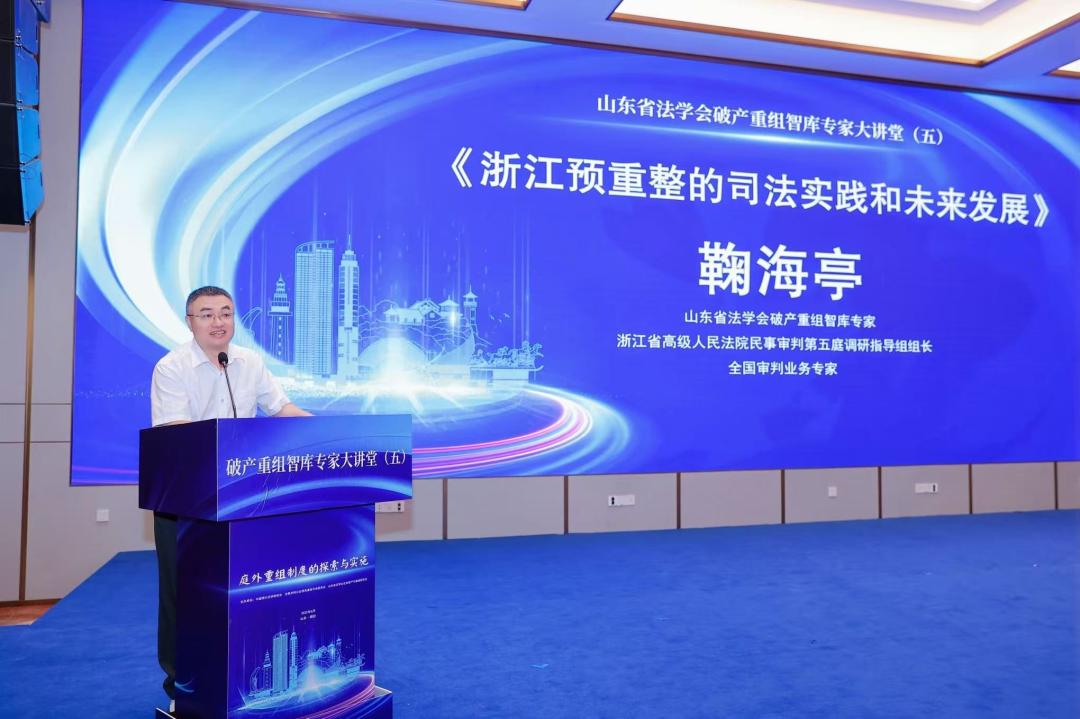 山東省法學會破產(chǎn)重組智庫專家、浙江省高級人民法院民事審判第五庭調(diào)研指導組組長、全國審判業(yè)務專家鞠海亭作《浙江企業(yè)預重整的司法實踐和未來發(fā)展》專題發(fā)言,介紹了浙江省高院在制定企業(yè)預重整規(guī)范性意見中的探索以及浙江溫州、金華和杭州等地方法院的相關探索、實施效果和存在的問題,強調(diào)了在企業(yè)預重整案件中管理人市場化選擇的重要性、破產(chǎn)企業(yè)財產(chǎn)保全措施的必要性、打擊破產(chǎn)“逃廢債”行為的難點與對策,以及個人債務集中清理案件審理中遇到的困難、問題以及對策等。