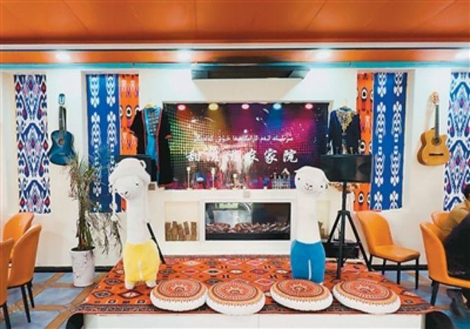 塔村內(nèi),努爾曼古麗·吐爾遜經(jīng)營的“甜滋滋農(nóng)家院”,院內(nèi)裝飾民族風(fēng)情濃郁。記者 丁美棟 攝