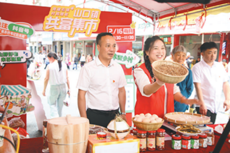 九江市修水縣山口鎮(zhèn)來蘇村后備力量在“共富市集”,參加助農(nóng)直播現(xiàn)場比拼。