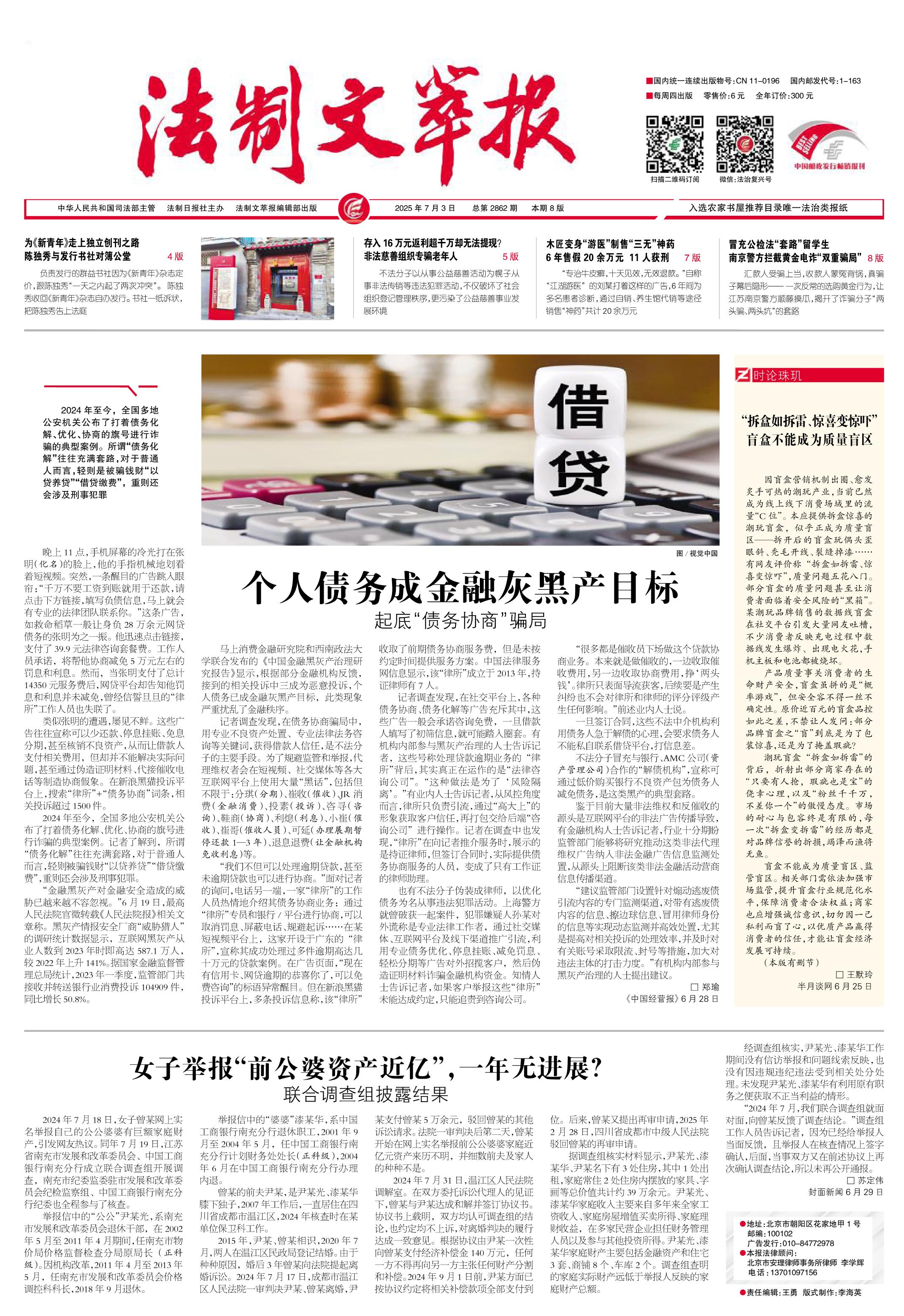 2025年7月3日《法制文萃報》總第2862期1版