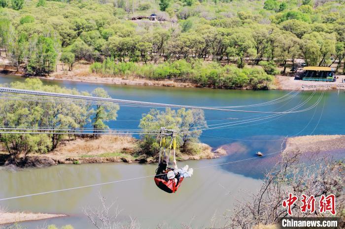 游客在洮兒河國(guó)家濕地公園暢玩滑索。興安盟融媒體中心供圖
