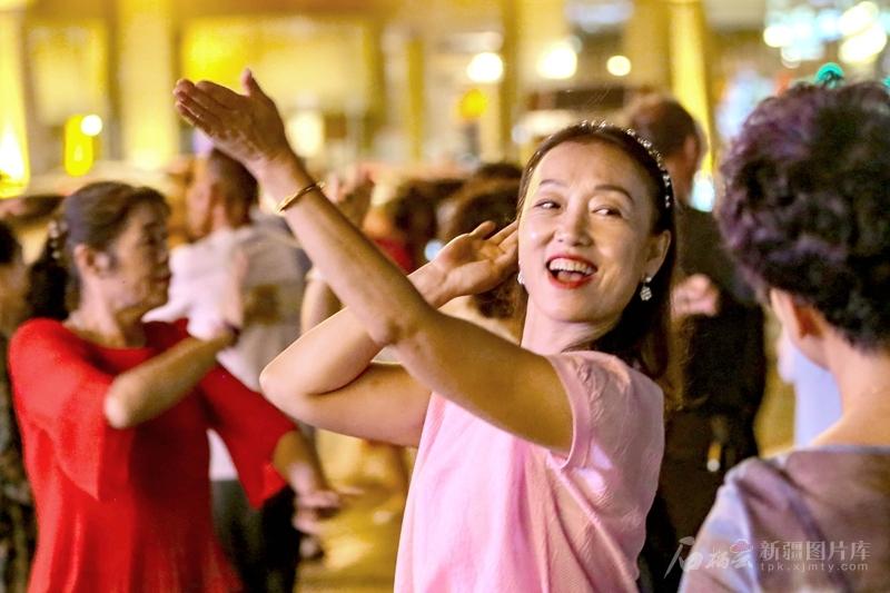 各族群眾在奇臺古城商業(yè)街旁的廣場上跳舞(7月4日攝)。記者 蔡增樂 攝
