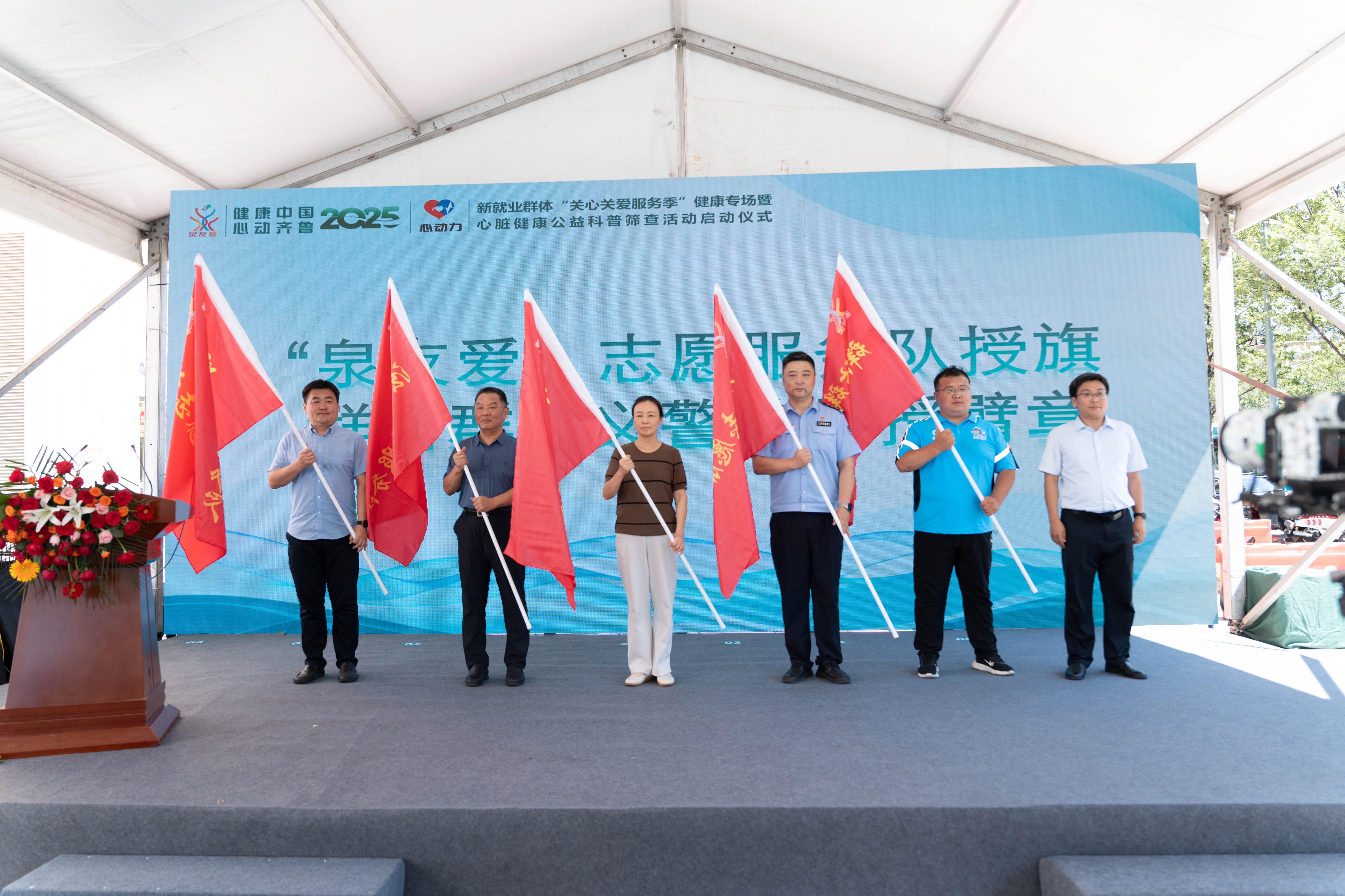 7月27日上午,山東省濟(jì)南市市中區(qū)舉辦新就業(yè)群體“關(guān)心關(guān)愛服務(wù)季”健康專場(chǎng)暨“健康中國(guó)?‘心動(dòng)齊魯’”2025年心臟健康公益科普篩查活動(dòng)?;顒?dòng)現(xiàn)場(chǎng),區(qū)委社會(huì)工作部為“泉友愛”志愿服務(wù)隊(duì)授旗,啟動(dòng)“健康中國(guó)·心動(dòng)齊魯”2025年心臟健康公益科普篩查活動(dòng),同步設(shè)置心臟監(jiān)測(cè)體驗(yàn)、健康知識(shí)科普、心臟科普館參觀等公益活動(dòng)。