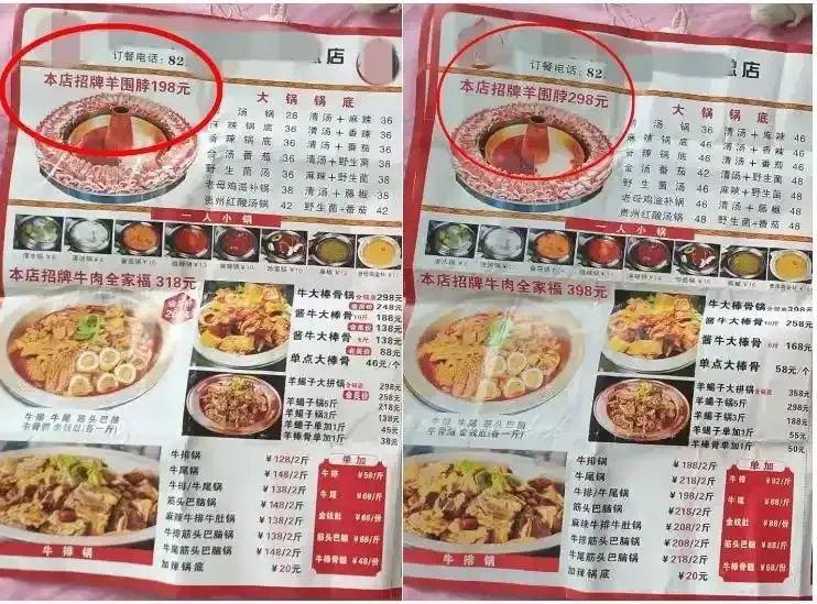 “陰陽菜單”上招牌菜的價(jià)格不一樣