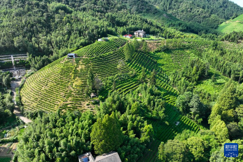 這是8月5日拍攝的浙江省杭州市余杭區(qū)徑山村茶山(無(wú)人機(jī)照片)。記者 毛竹 攝