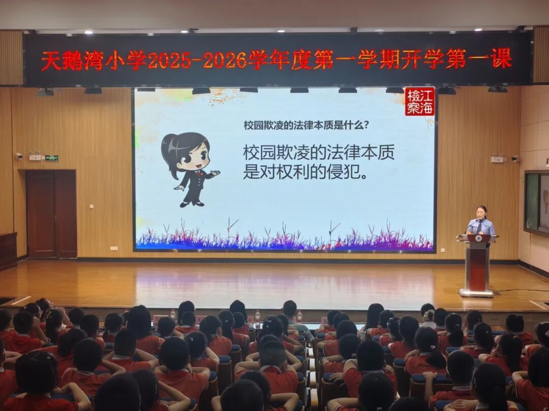 江海區(qū)檢察院黨組副書記、副檢察長程生彥和第二檢察部主任鐘榮杰,分別以滘頭小學(xué)和陽光學(xué)校法治副校長的身份,依托駐校檢察官工作室,精準(zhǔn)對接校園實(shí)際,開展以“與法同行,護(hù)校安園——堅(jiān)決向?qū)W生欺凌說‘不’”為主題的法治安全教育課。