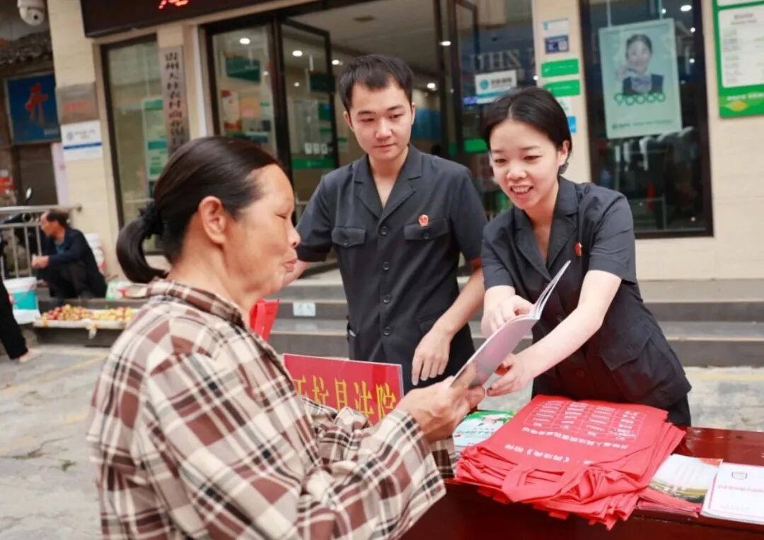 針對少數(shù)民族群眾語言習(xí)慣,運(yùn)用“侗語+漢語”“苗語+漢語”雙語普法模式。精心挑選既懂法律專業(yè)知識又通曉少數(shù)民族語言的干警組建雙語普法團(tuán)隊(duì),他們深入高釀鎮(zhèn)、石洞鎮(zhèn)、地湖鄉(xiāng)等少數(shù)民族聚居鄉(xiāng)鎮(zhèn)。利用趕集日人流集中的特點(diǎn),用“聽得懂、記得牢、用得上”的鄉(xiāng)音土語講解《中華人民共和國民法典》《中華人民共和國反有組織犯罪法》等法律法規(guī)。講解過程中,結(jié)合當(dāng)?shù)爻R姷纳搅滞恋丶m紛、婚姻家庭矛盾等典型案例,把法律條文轉(zhuǎn)化為群眾熟悉的“身邊事”,讓各族群眾在熟悉的語境中理解法律內(nèi)涵、認(rèn)同法治精神,讓法治宣傳真正走進(jìn)群眾心里。