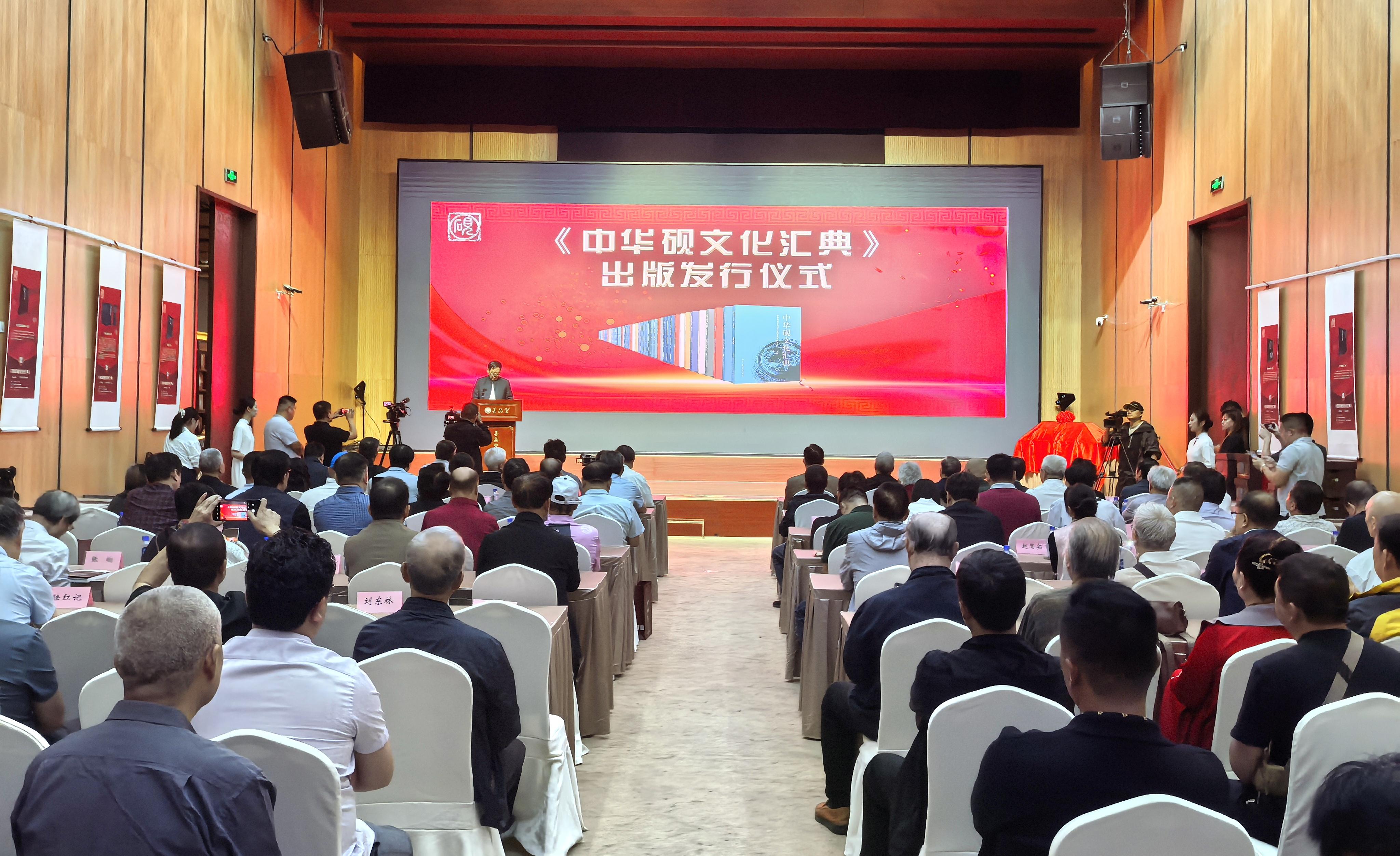 《中華硯文化匯典》分別由北京工藝美術(shù)出版社以及人民美術(shù)出版社出版,共分七卷共20本總計800萬字,時任中華炎黃文化研究會會長許嘉璐擔(dān)任編審委員會名譽(yù)主任并撰寫《總序》;劉紅軍、張希清為主任,王震中、劉慶柱等史學(xué)、文物、考古領(lǐng)域?qū)<覍W(xué)者組成編審委員會。首發(fā)儀式上,全體與會人員對百位硯文化專家、學(xué)者和志愿者持續(xù)十?dāng)?shù)年艱辛編典表達(dá)了各自的敬意,大家一致認(rèn)為:《中華硯文化匯典》既對硯文化璀璨的歷史進(jìn)行了梳理和總結(jié),又對當(dāng)代硯文化的現(xiàn)狀和研究成果作了較為充分記錄與展示,既有很高學(xué)術(shù)性,又具有向大眾普及的功能;它的出版發(fā)行既是對中華硯文化歷史的梳理總結(jié),也是當(dāng)代硯文化發(fā)展成果的集中展示和記錄;它對于宣傳和普及硯臺文化知識,引領(lǐng)和指導(dǎo)硯臺文化研究,推動中國硯文化事業(yè)整體發(fā)展都具有十分重大的意義。(盧敏、廖振華 文/于江攝 影)