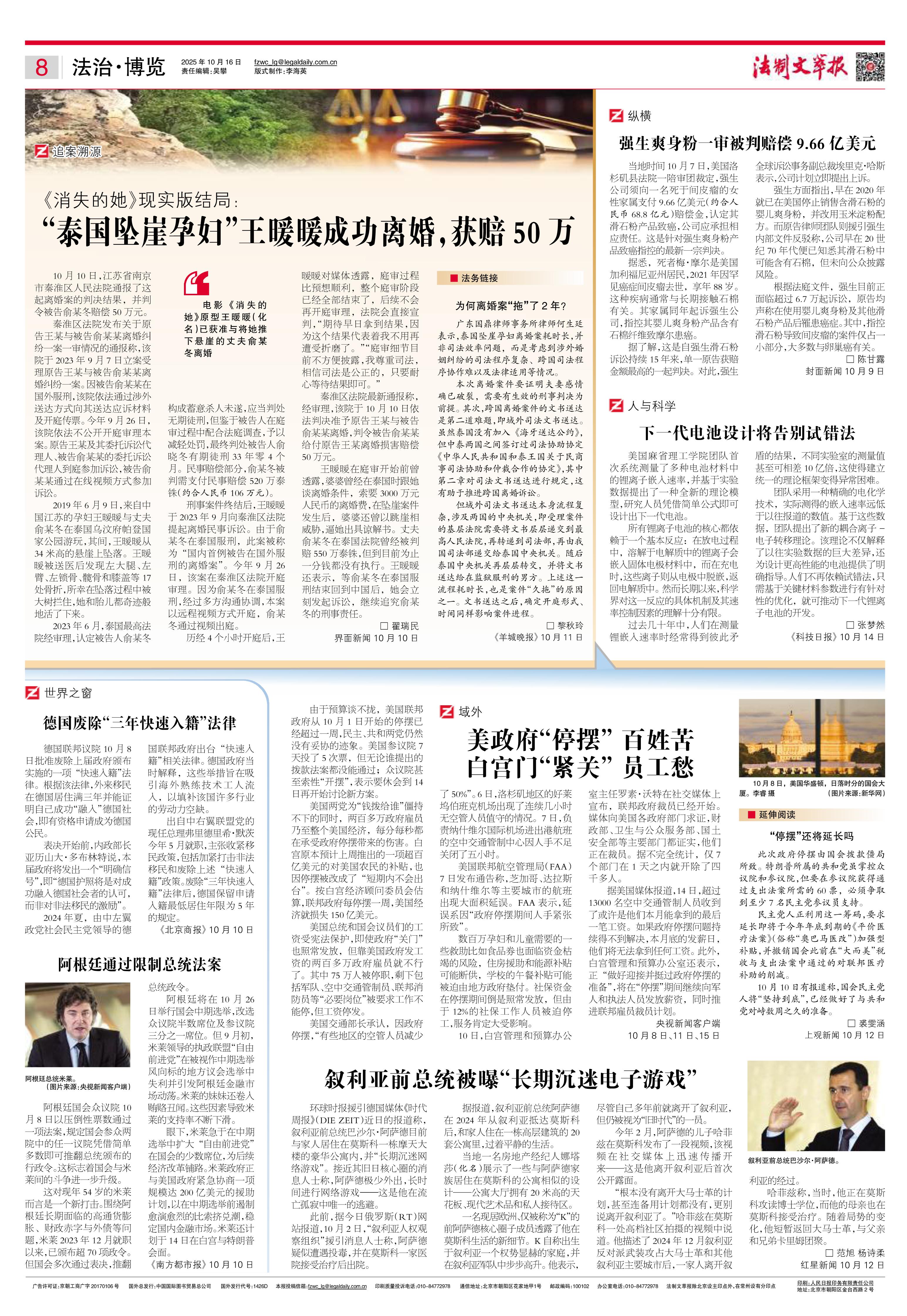 2025年10月16日《法制文萃報》總第2876期8版