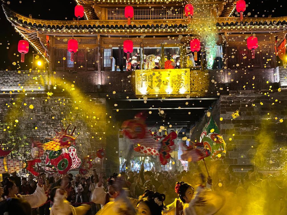 夜色漸濃,安徽歙縣徽州古城陽和門上鼓聲乍起,一盞盞流光溢彩的魚燈應聲游走,穿梭于黛瓦飛檐間。光影搖曳中,詩人筆下“鳳簫聲動,玉壺光轉,一夜魚龍舞”的盛景在徽州大地復現(xiàn)。