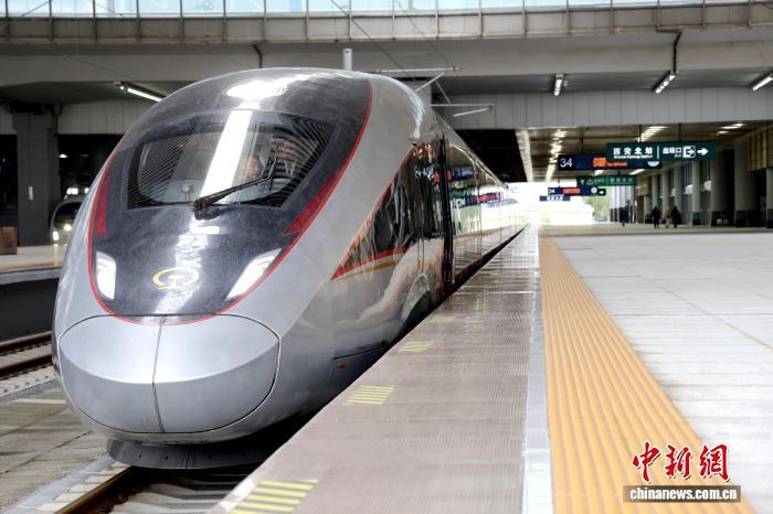 11月17日,西延高鐵進(jìn)入試運行階段,列車??吭谖靼脖闭菊b待發(fā)。張立麗 攝