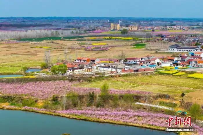 航拍湖北棗陽(yáng)熊集鎮(zhèn)萬畝桃園。(無人機(jī)照片)張倩龍 攝