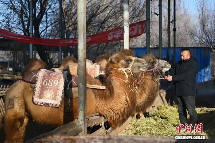 根據(jù)游客到訪情況,冬春季,駱駝們2至3天輪流上班一次。冬季上崗的駱駝并非隨機(jī)挑選,而是各有“任務(wù)”。趙文龍說,一部分是“調(diào)皮偷懶”的年輕駱駝,遇到體重較重的游客會(huì)故意跪地不起,需要通過冬季復(fù)訓(xùn)磨練性子;另一部分則是年齡稍大的駱駝,夏季不讓它們承擔(dān)重活,冬季偶爾上崗既能活動(dòng)筋骨,還能發(fā)揮“老帶新”的作用,指導(dǎo)年輕駱駝適應(yīng)工作。