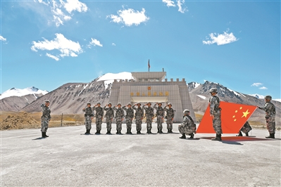 近日,新疆喀什軍分區(qū)紅其拉甫邊防連組織即將退役的士兵進(jìn)行告別國(guó)門儀式。圖為守邊戰(zhàn)士面向國(guó)旗莊嚴(yán)宣誓,他們紛紛表示,到地方后會(huì)續(xù)寫(xiě)軍人新風(fēng)采。李小龍攝