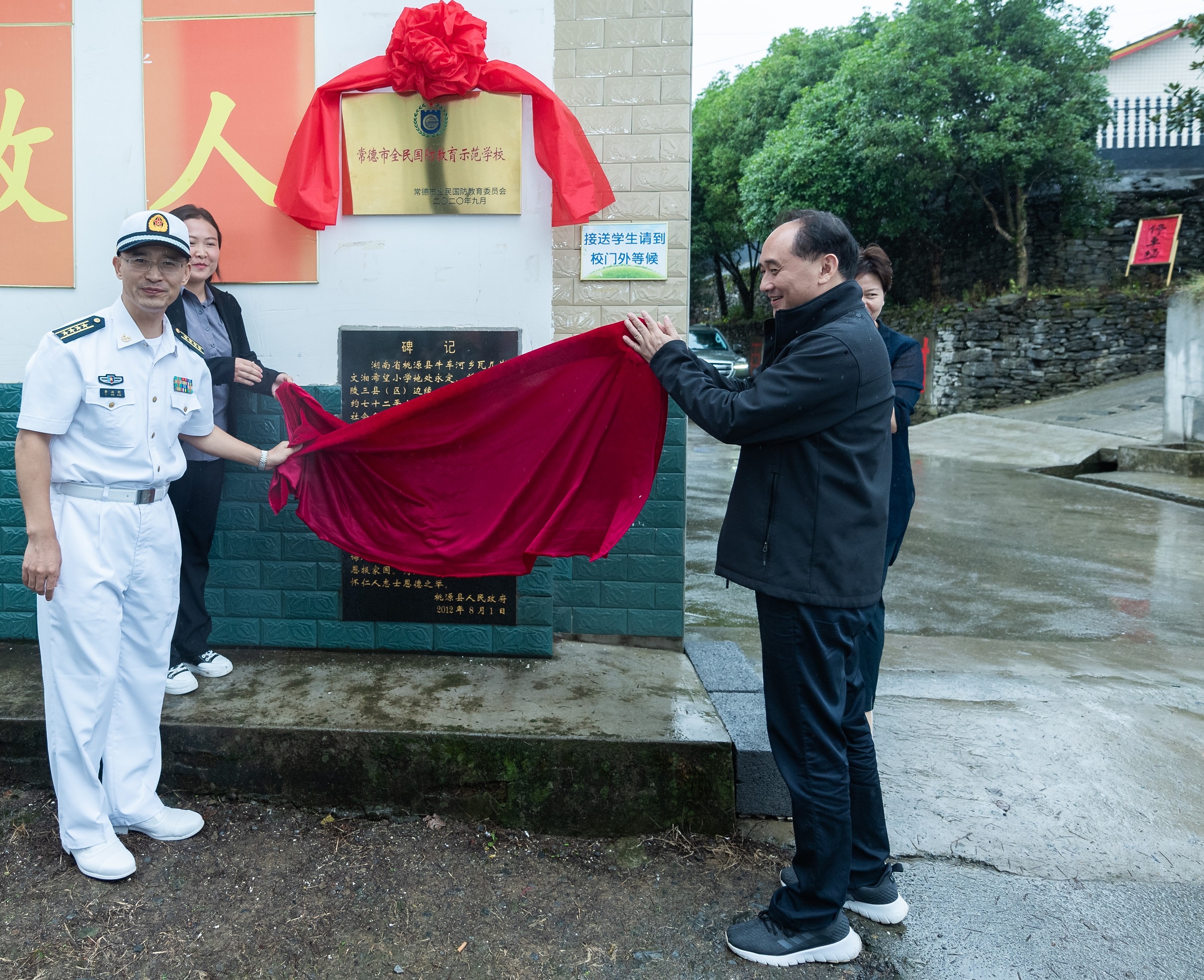 圖為軍地領(lǐng)導(dǎo)共同為國防教育示范學(xué)校揭牌。彭三珊 攝