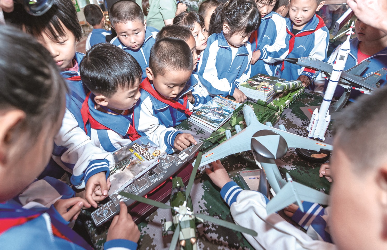 圖為瓦兒崗小學(xué)學(xué)生對贈送的武器裝備模型愛不釋手。彭三珊 攝