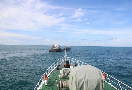 圖為海警艦艇在轄區(qū)海域巡邏時發(fā)現(xiàn)可疑船只。胡鵬濱 攝