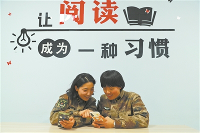 圖③:通過(guò)智能手機(jī),官兵能從網(wǎng)上閱讀更多書(shū)籍。