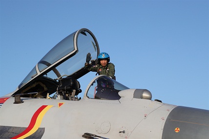 盧朝輝登上戰(zhàn)機,自信揮手。武云飛攝
